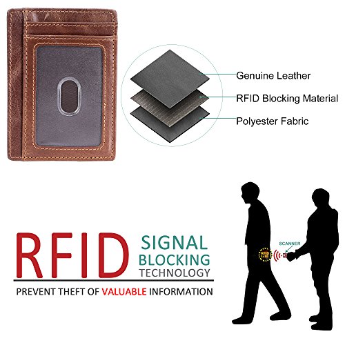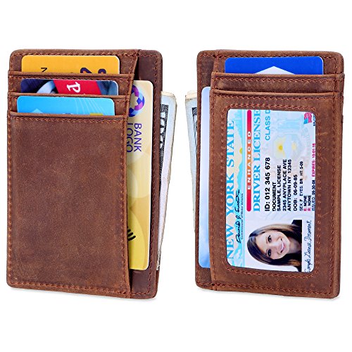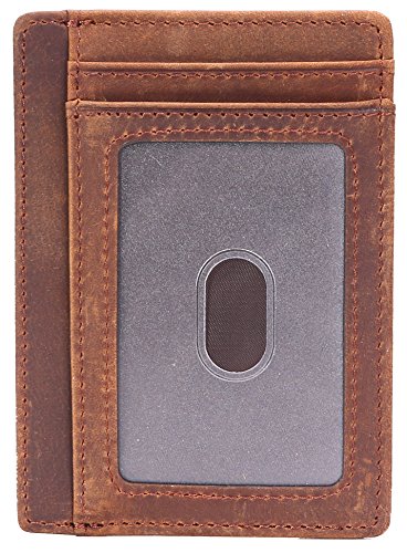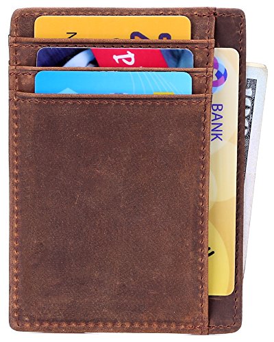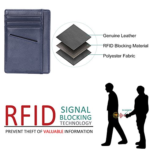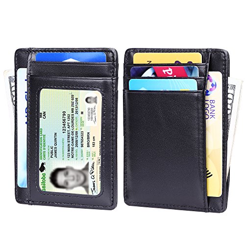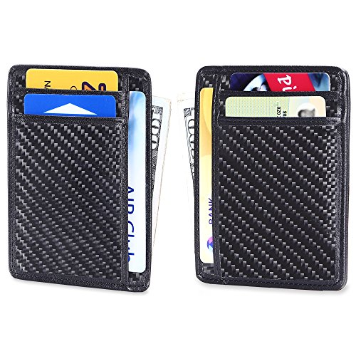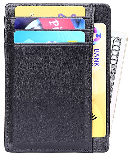 | Minimalist Wallet Slim Front Pocket Wallet Leather Card Holder RFID Blocking |