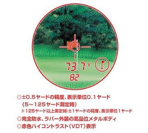 測定精度・表示単位:精度±0.5ヤード、0.1ヤード表示(5~125ヤード測定時)、精度±1ヤード、1ヤード表示(125ヤード以上測定時)