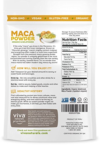 Viva Naturals Gelatinized Maca is certified organic, non-GMO, gluten-free and vegan-friendly. Try maca today and experience the full benefits of this Peruvian wonder.