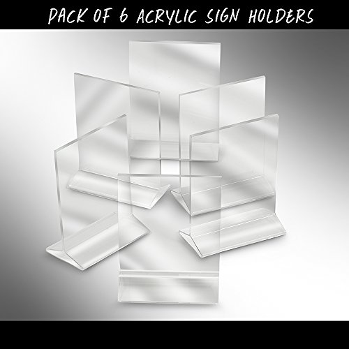 (Pack of 6) ChefLand 5" x 7" Acrylic Sign Holder / Clear Table Card Display / Plastic Upright Menu Ad Frame.