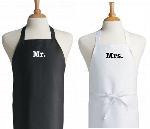 Studio : V-Tex Inc. Publisher : V-Tex Inc. Product Description A terrific gift for the bride and groom! Each with their very own apron, they'll be cooking up more than just love! With full-size coverage at a very reasonable price, our aprons are one size fits all with 100% commercial wash ability. Aprons are a great addition to the newlyweds kitchen! 0