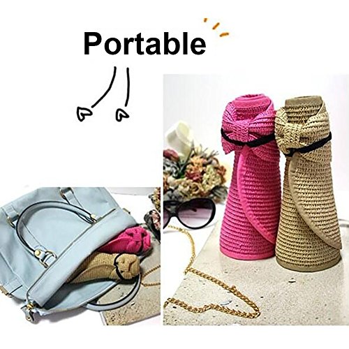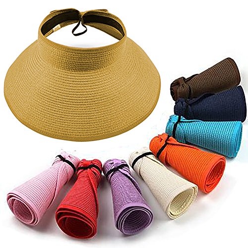 | Opromo Packable Women's Wide Brim Foldable Roll-up Straw Beach Sun Hat Visor Cap |