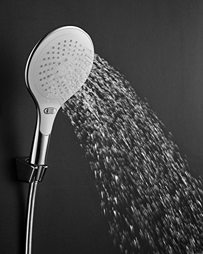 LUXURY SHOWER HEAD—AICVAD 6" hand held showerhead is made from highest quality ABS material and features an elegant Chrome polish, including a large 6" face plate which is so bright that can be used as a mirror. Their flexible rubber design allows easy rub-clean removal of calcium and mineral deposits. This helps your shower head remain clean and clog-free for superior performance.