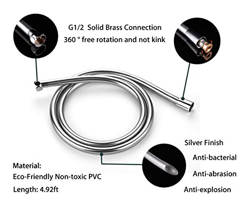 NO-KINK PVC HOSE—The extra-long PVC 4.92ft (59") hose is lightweight, flexible which can 360 ° free rotation and not kink. It is built with a solid heat resistant all around and finished for a modern and stylish looking, only found in luxury spas and hotels. The standard G1/2-Inch connectors fit for Global 1/2" interface and most standard handheld shower head.