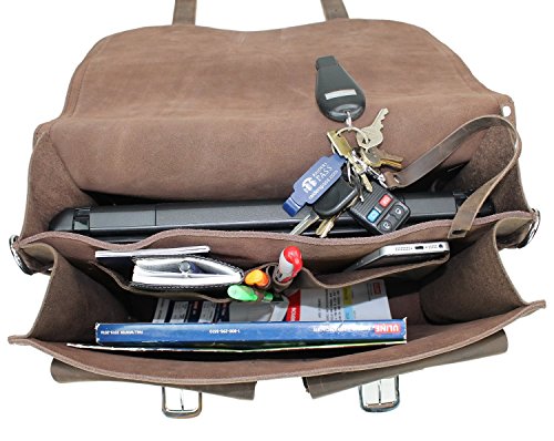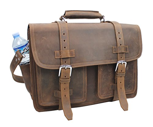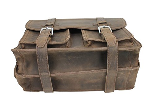 -. Feature : Dimension: 18 * 12.5 * 8"; weight 10 lb; strap length: 37.5 - 67" / Internal size: 16.5 * 12"; 2 large sections; 3 full leather straps / 2 front claps clock flap over pocket 8 * 6.7 "; 2 side pockets / Large back pocket; 4 internal pocket: 2 large and 2 small one / Heavy duty, full leather made; secure buckle closure
