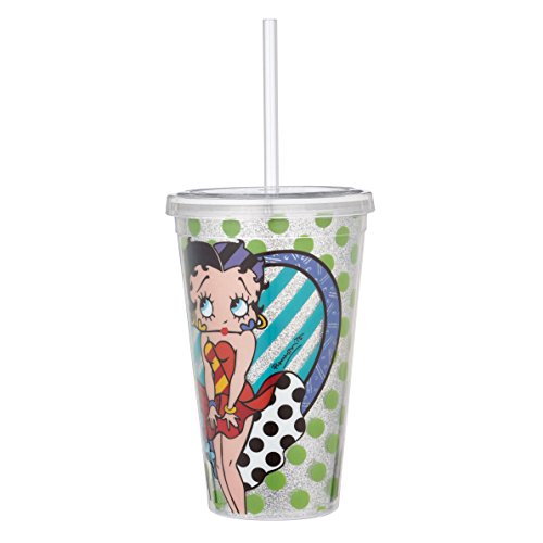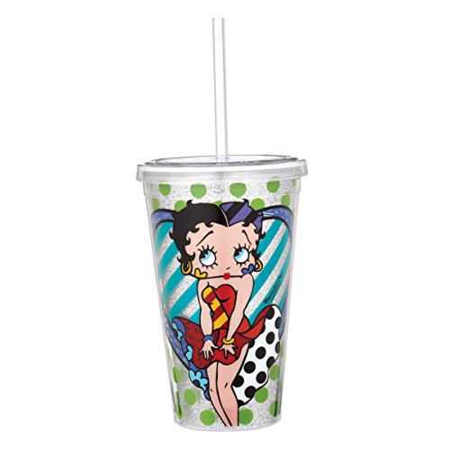 Enesco Betty Boop by Britto Green with Glitter Tumbler, 9.5", Multicolor