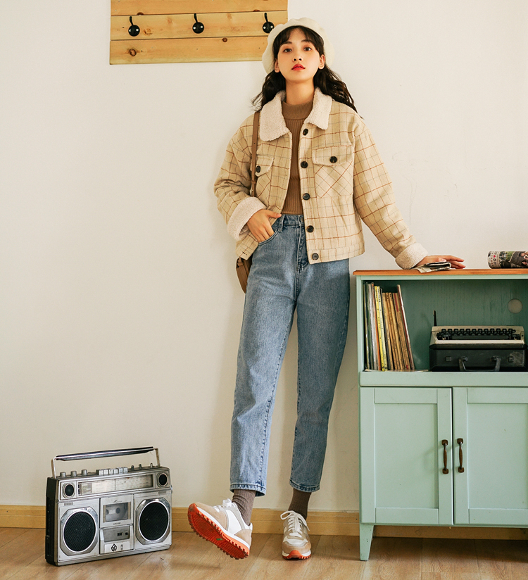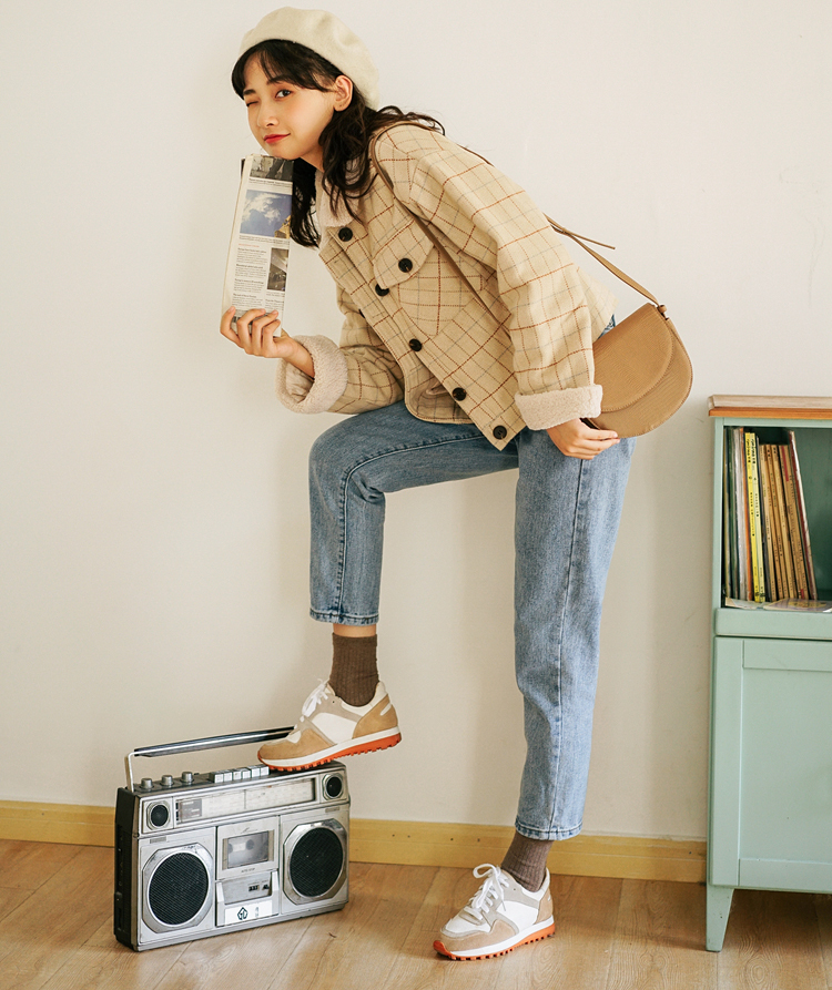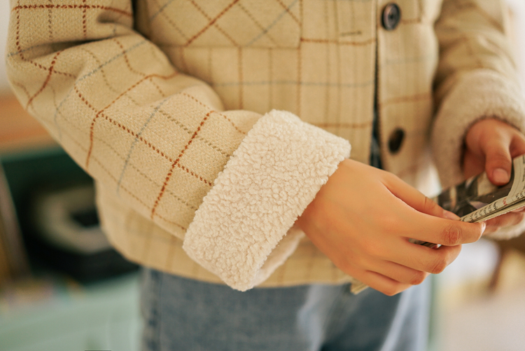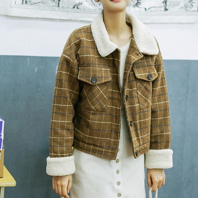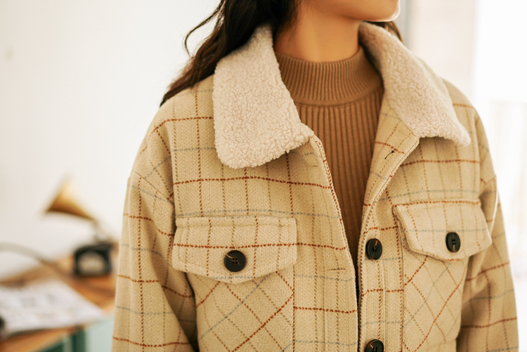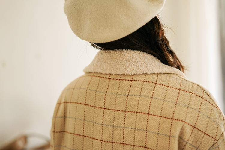 シーズンライクなファブリックと、ナチュラルな色合いのチェック柄が印象的なショート丈ジャケットです★