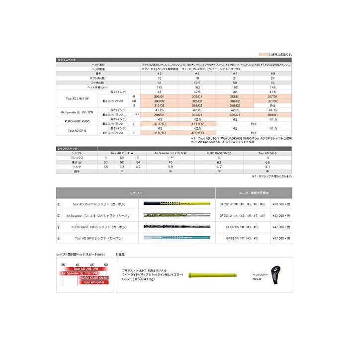 원본상품명: BRIDGESTONE(ブリヂストン) JGR フェアウェイウッド Tour AD J16-11W カ?ボンシャフト GFGB1W