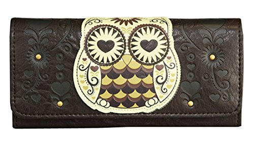 -. Feature : You'll have a hoot carrying your cash around in this cute and stylish owl wallet! / All over embossed detail, front snap closure / Clear I. D Holder, 5 Card Slots, inside bill slots, zipper pocket on back / Measures: 8 x 4 x 1 / Manufactured by Loungefly