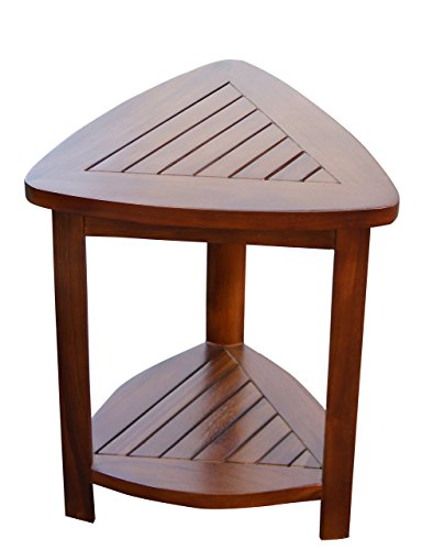 ALA TEAK Wood Bath Spa Shower Stool Corner Bench Stool Fully Assembled