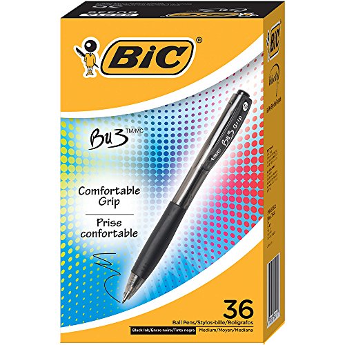 -. Title : BIC BU3 Grip Medium Ballpoint Pen (1.0mm) 36-Pack Box, Black (BU3361)