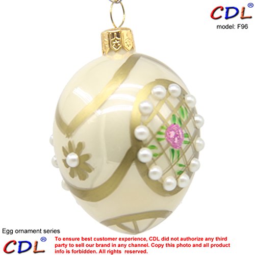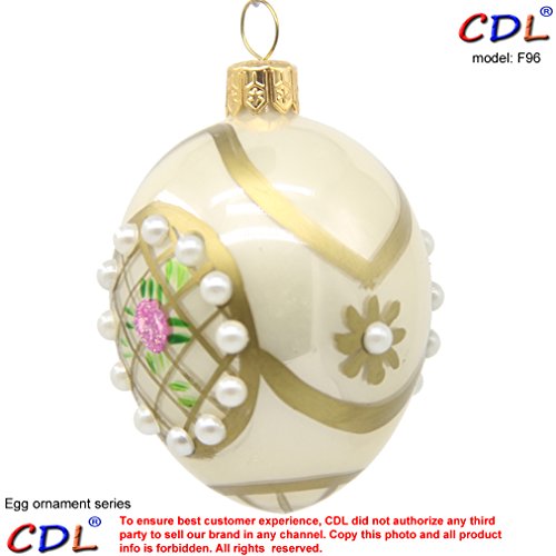 CDL 3" glass blown white egg decorated with pearl stone and flowers glitter Traditional/Glitter Christmas Tree Glass Ornaments Hand Painted Blown Glass F96