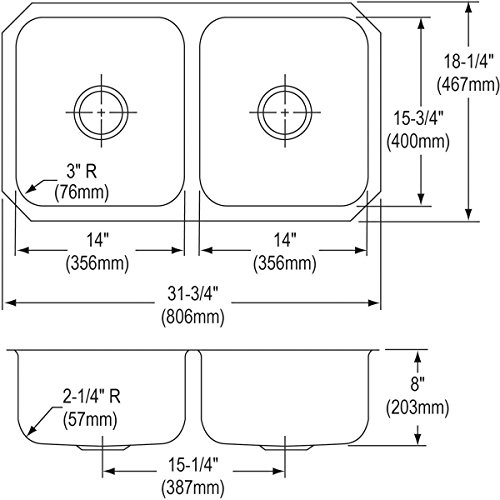 Dayton DXUH3118 Equal Double Bowl Undermount Stainless Steel Sink