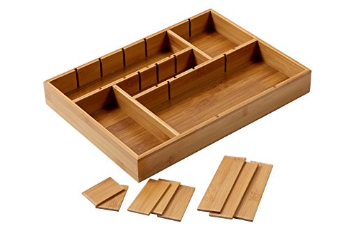 Durable Bamboo Tray Drawer Organizer for Utensils Cutlery