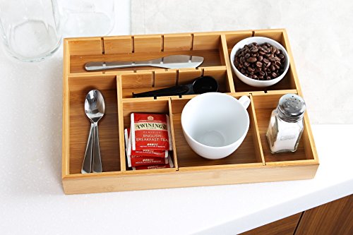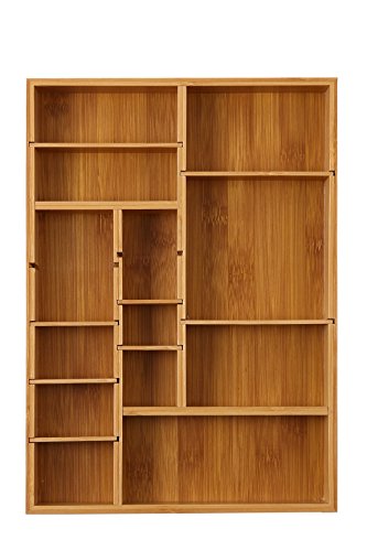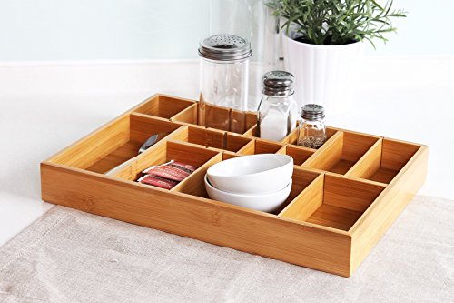 Great functional storage solution for utensils and cutlery. Fits in most standard kitchen drawers. Features 8 tray dividers in various sizes for tailored use. Easy to maintain and clean - simply wash with mild soap and water. Size: 14" x 10" x 2" inches