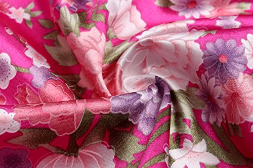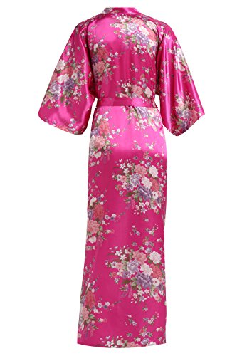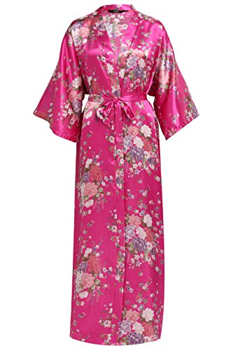BABEYOND Womens Kimono Robe Long Floral Wedding Robes for Bridesmaids Satin Silk Kimono Nightgown Sleepwear 135cm Long (Rose Red)