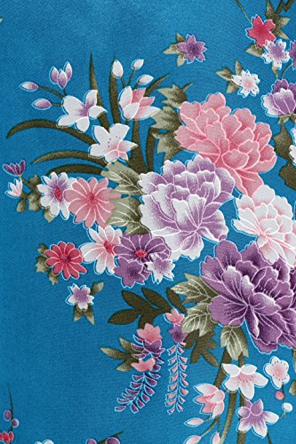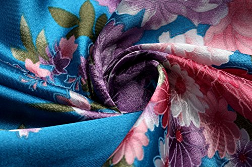 BABEYOND Womens Kimono Robe Long Floral Wedding Robes for Bridesmaids Satin Silk Kimono Nightgown Sleepwear 135cm Long (Lake Blue)