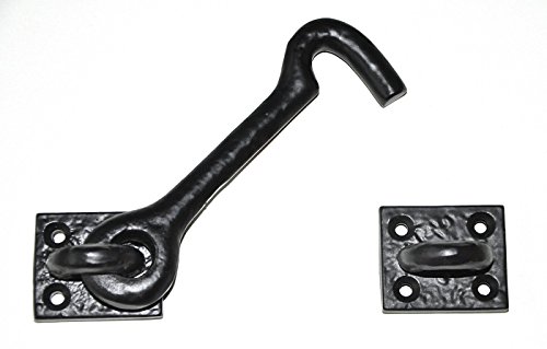 Sliding Barn Door Cabin Hook and Eye Latch - 4.5” Cast Iron Rustic Hardware Lock for Gate, Shed, Garage - Add a Farmhouse, Vintage, Industrial Touch To Any Decor, Interior & Exterior
