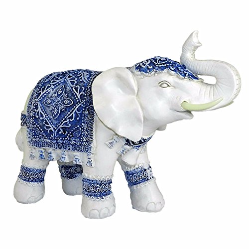 Benzara Attractive Resin Elephant Sculpture, Blue and White