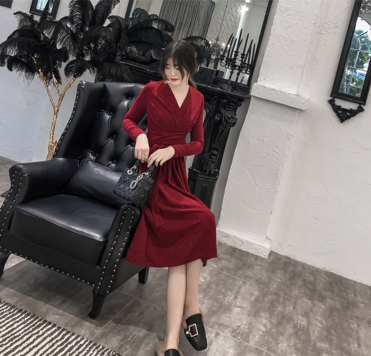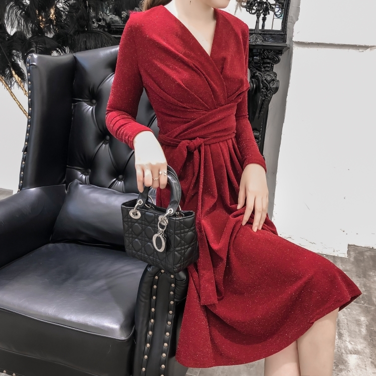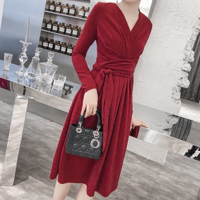 カシュクールデザインが作り出すVネックで顔周りをすっきりと。