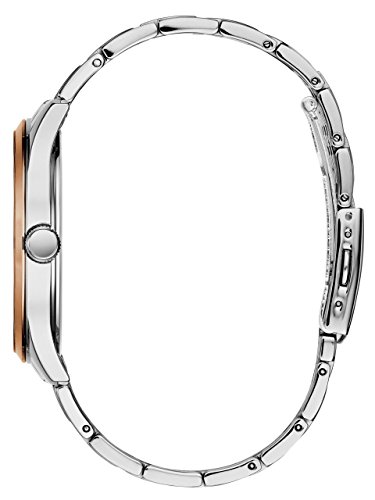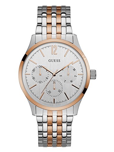 Silver-tone meets dressy functionality. Multi-function dial with Rose Gold-tone accents make this style pop for the classy man