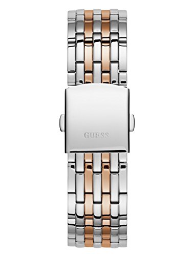 A timeless edition to your everyday look, this two-tone timepiece features a multifunctional design with day, date and 24 hour international time. Rose gold-tone steel bezel with a white dial.Feature