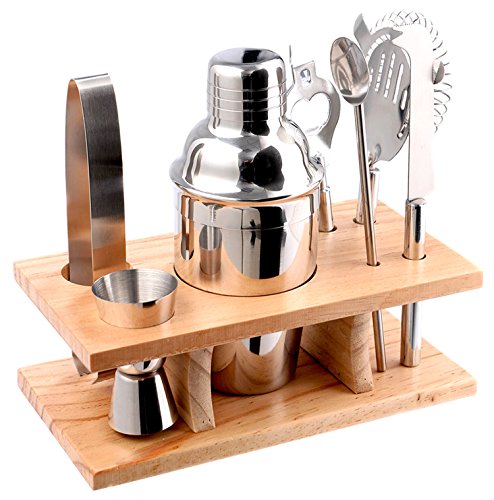 -. Feature : High quality and steel stainless bar set tools which include cocktail shaker, double jigger, handled strainer, lemon/lime slicing knife, stirrer, tongs, bottle opener and wood holder. / 8 pieces stainless-steel bar set. With this set, able to make a truly perfect martini, margarita or daiquiri. / Great for home bars and parties. / Durable stainless steel material with wood holder for storage. / Don't hesitate to buy it now.