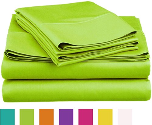 Spirit Linen Hotel 5Th Ave Super Bright Collection Microfiber Sheet Set, Queen, Lime