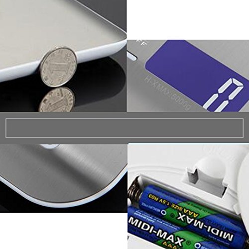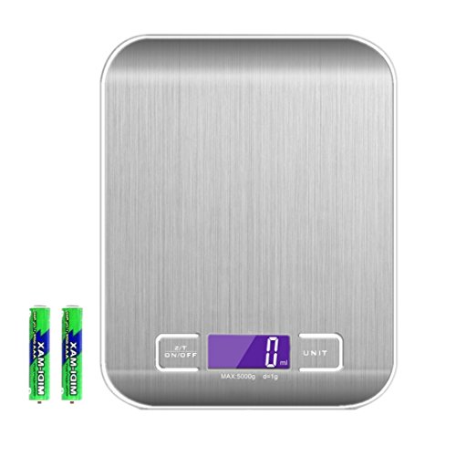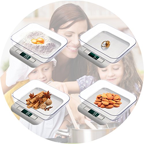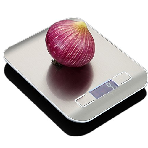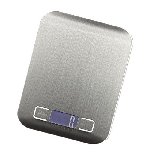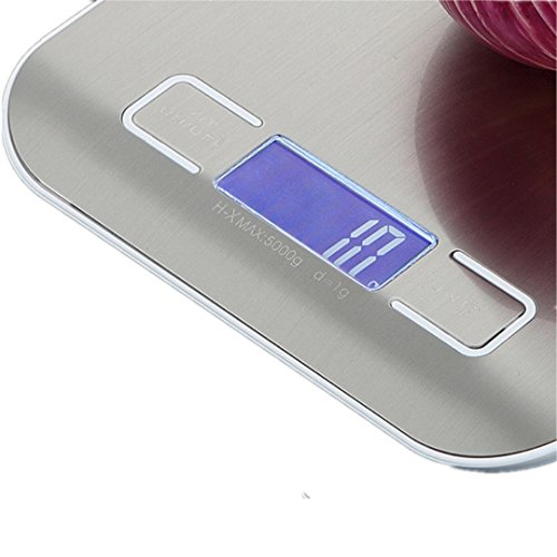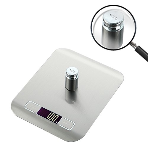 Digital Kitchen Scale, Silver, 5kg/11lb Stainless Steel, Multifunction Food Scale for Dieting with LED Display (Battery Included)