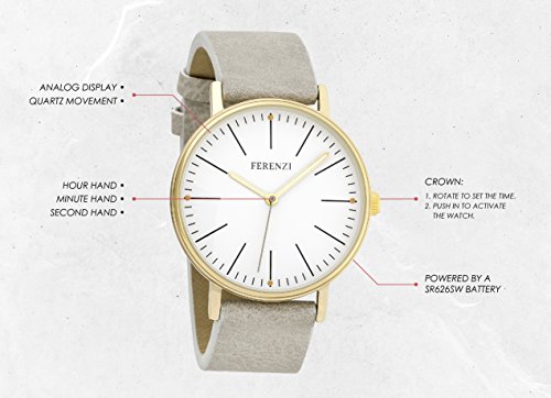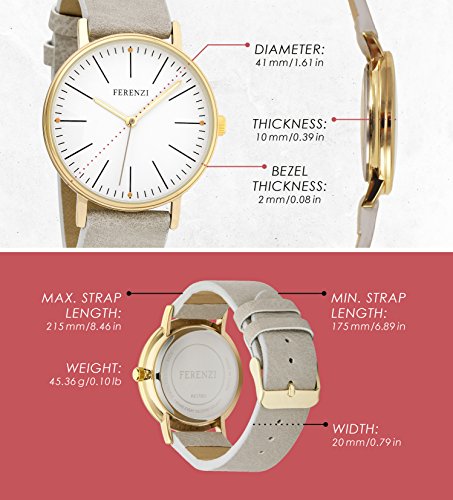 The Ferenzi brand offers customers superior value in an increasingly competitive market. The Ferenzi product lines draw inspiration from the most popular designs and are available at a fraction of designer prices. Ferenzi's mission remains consistent; to provide customers with products that are novel in design and affordable without compromising quality. The versatile FZ17202 watch serves its function efficiently and makes a statement. The light weight and comfortable strap, as well as the oversized face with its precise time markers will add convenience to your routine. Punctuality is important to you, but so is looking great. Luckily, with the FZ17202 you can take on your day with uncompromising comfort, style, and confidence.Feature
