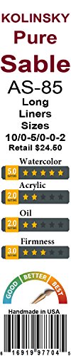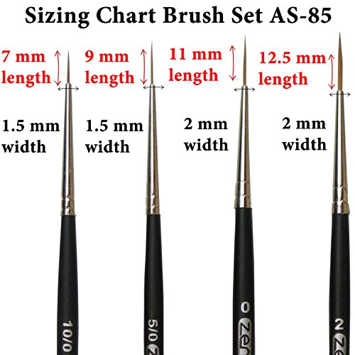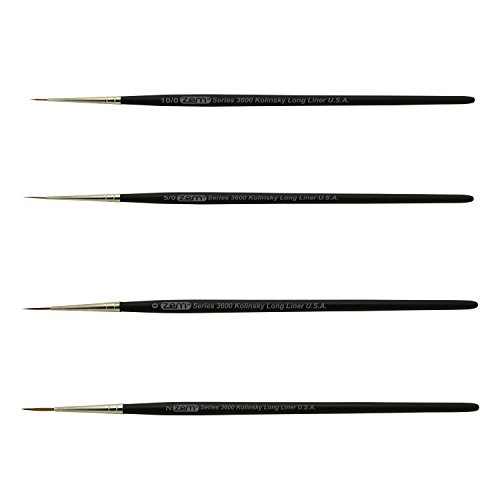 ZEM BRUSH Kolinsky Pure Sable Artist Brush Set Long Liners 10/0, 5/0, 0, 2