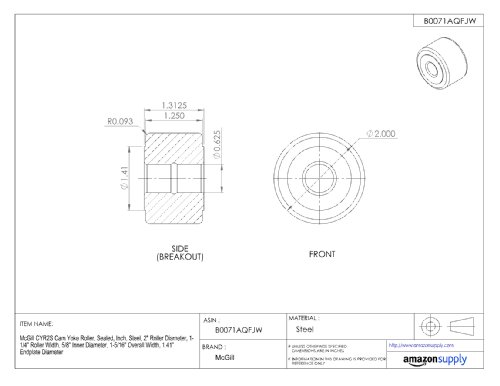 McGill CYR2S Cam Yoke Roller, Sealed, Inch, Steel, 2" Roller Diameter, 1-1/4" Roller Width, 5/8" Inner Diameter, 1-5/16" Overall Width, 1.41" Endplate Diameter