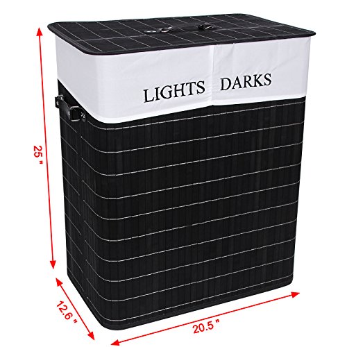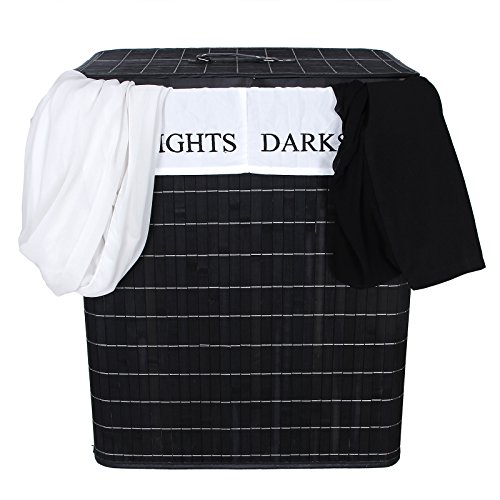 Studio : Songmics Publisher : Songmics Binding : Kitchen Product Description The Songmics Bamboo Laundry Hamper is a great method for organizing laundry mess and other trivial stuffs. It simplifies your house working and keeps your home environment clean and tidy. Crafted from Natural Bamboo and colored by Classic Black, it impressively enhances the stylish feeling of your home decor. The thickened lid and strengthened bottom makes the whole constructure sturdier and more stable. The two-section designed liner bag greatly helps you to classify your laundry. Also the simple design makes it easy to be assembled and space-saving when folded flat.