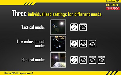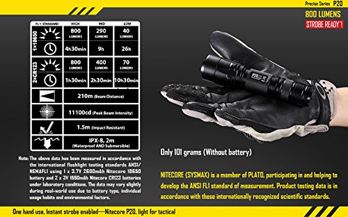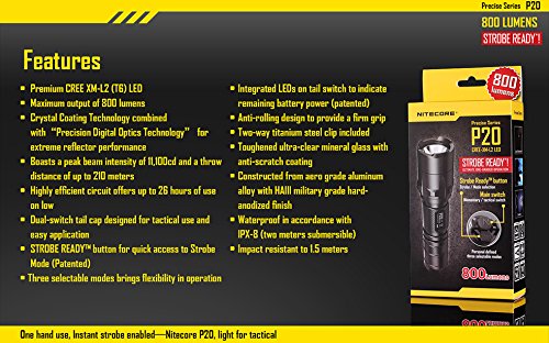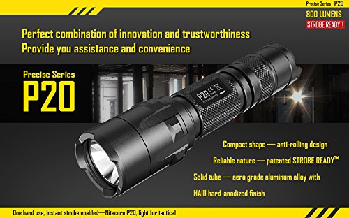NITECORE P20 PRECISE 800 LM CREE XM-L2 T6 TACTICAL LED FLASHLIGHT, BLACK, LEFT/RIGHT