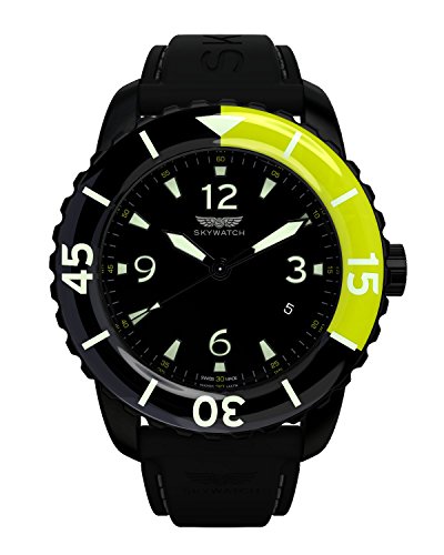 Skywatch '44mm 3-Hand' Swiss Quartz Stainless Steel and Silicone Casual Watch, Color:Black (Model: CCI035-A)