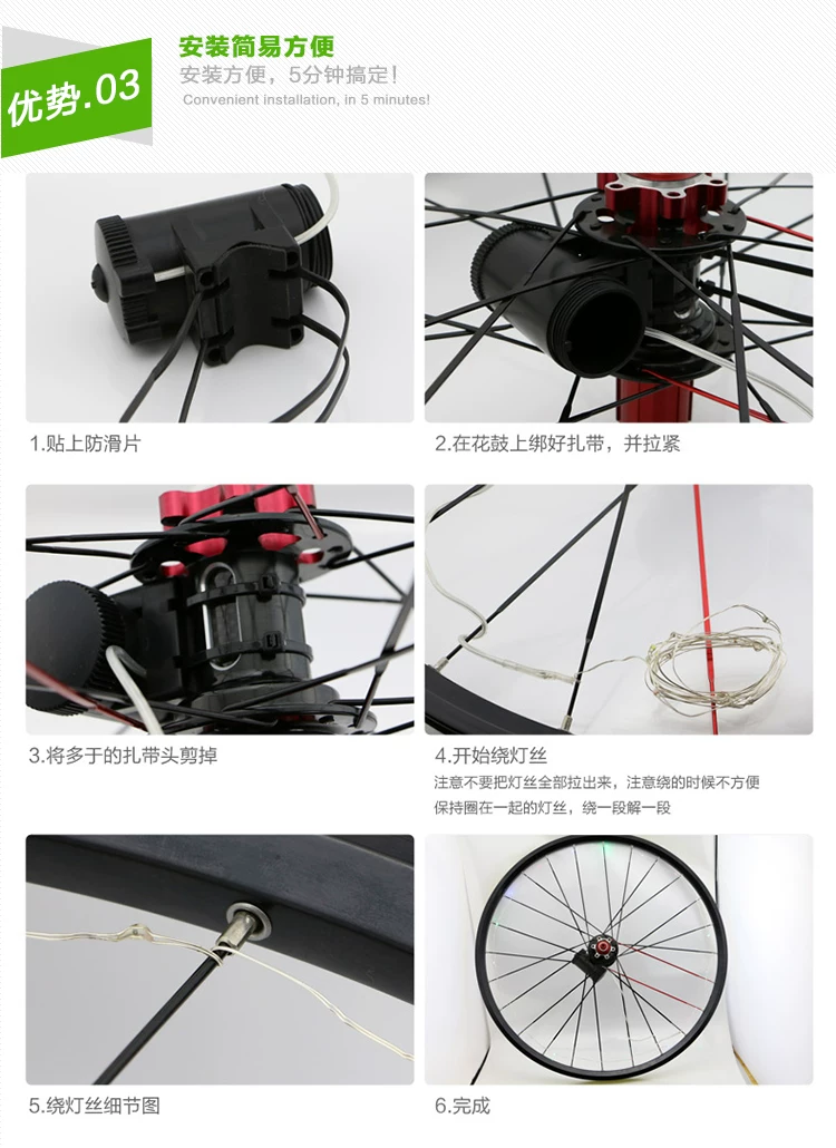 山地/公路装备自行车灯辐条灯死飞风火轮单车灯警示灯夜骑配件