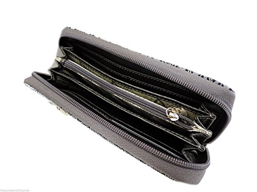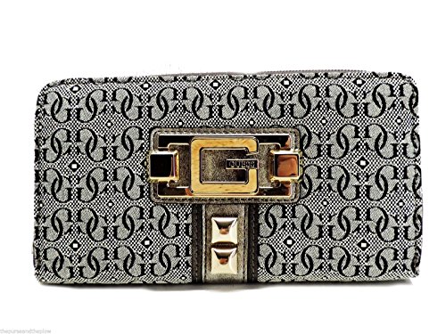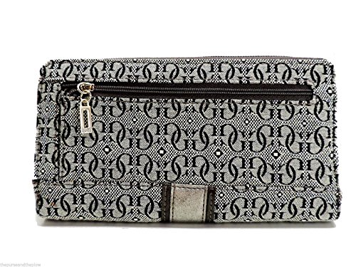 -. Binding : Apparel -. Brand : GUESS -. Color : Pewter -. Department : womens -. EAN : 0758193211481 -. Feature : Style: SI230743 / Measurements: 7.5" L x 1.25" D x 4" H / Closure: Zip Around / Exterior Details: One back zip pocket / Interior Details: Eight card slots, two billfold pockets, two gusset billfold pockets, and center zip coin pocket -. ProductGroup : Shoes -. ProductTypeName : SHOES -. SKU : Shoes-PTD-2879 -. Title : Guess Calgary SLG Pewter Zip Around Signature P.R.Int Clutch Wallet -. UPC : 758193211481