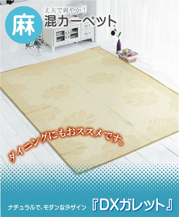 【商品名】麻混カーペット 『DXガレット』 アイボリー 江戸間6畳 261×352cm(裏:不織布)