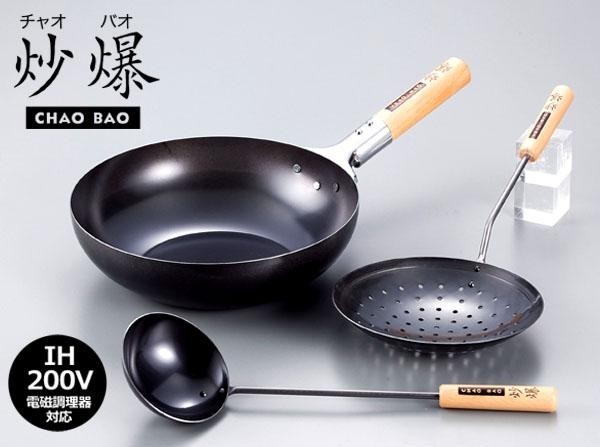 炎であおらなくてもシャキッと仕上がる中華鍋。お玉やジャーレンもついてIHでも本格中華が思いのまま!!熱くなりにくい木製のハンドルなど、使いやすさにもこだわりました。 |