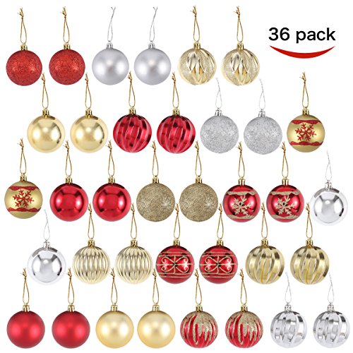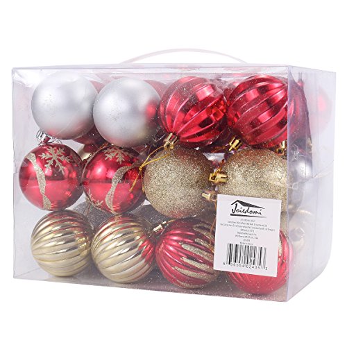 Joiedomi 36 Collectable Ball Ornaments Set for Christmas Tree Decoration Red and Gold with 18 Designs (60 mm, 2.36”)