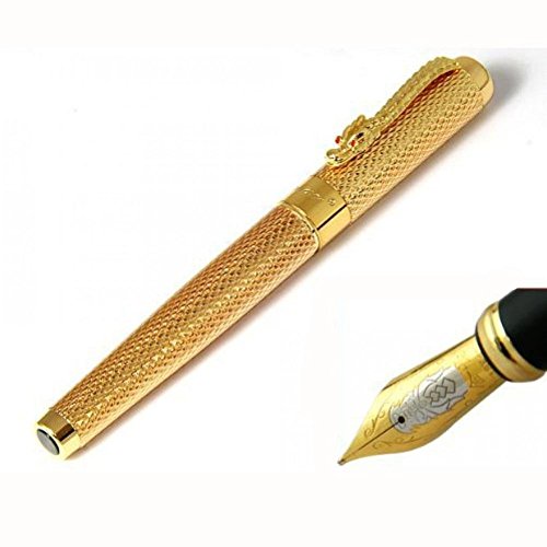 -. Title : AMA(TM) Luxury Jinhao 250 Calligraphy Fountain Pen Golden Dragon Style Medium Nib Art Pen
