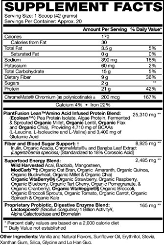 Includes 1 (29.6oz Tub) PlantFusion Lean Weight Loss Vanilla Bean Protein Powder, Non-GMO