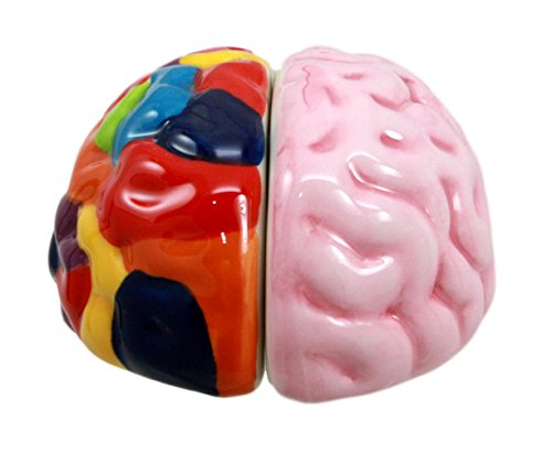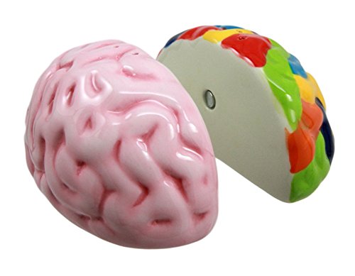 Ever wonder what goes on in our brains? The left and right brain functions differently whether it be arts or academics!!! These salt pepper shakers just adds humor and animation to the table!