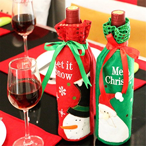 Christmas Wine Bottle Bag Cover Holiday Decoration Party Kitchen Table Decoration -2 Pack Santa Snowman