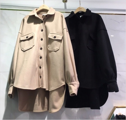 Women`s Oversized Wool Blend Shirts Beige BlackSize, Content & Care* Color : Beige, Black* Size : Free* Fabrication : Wool, Polyester*Care : Dry CleanModel Shown is 5'4"(163 cm) Wearing US size 4 (S)