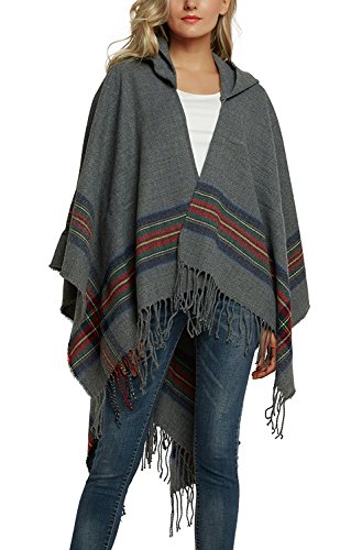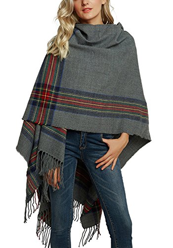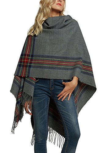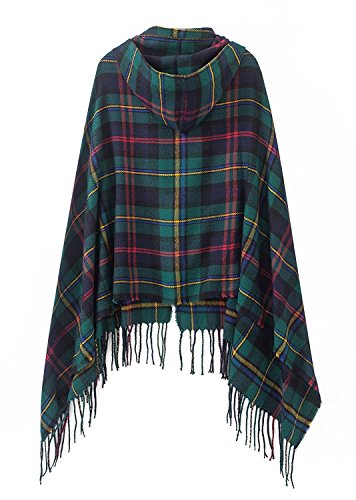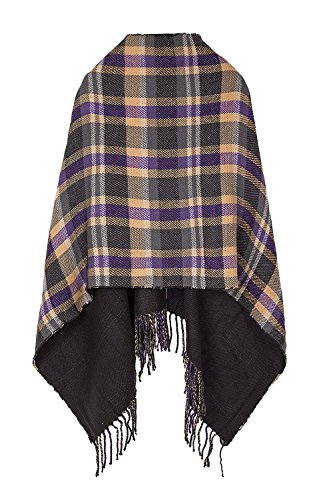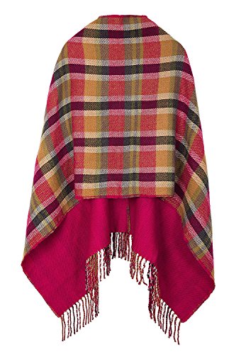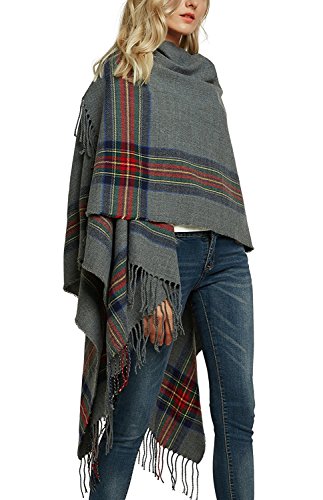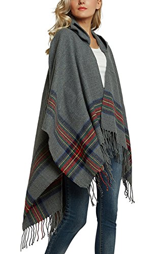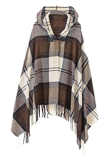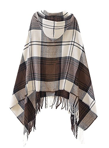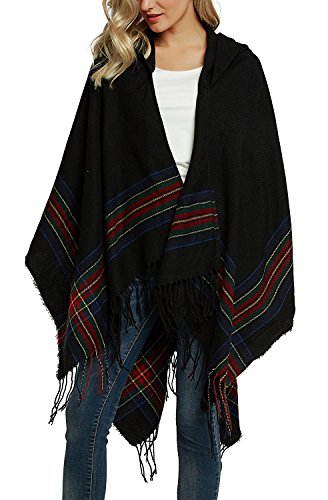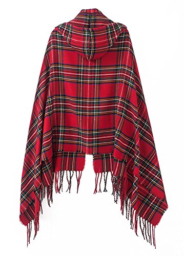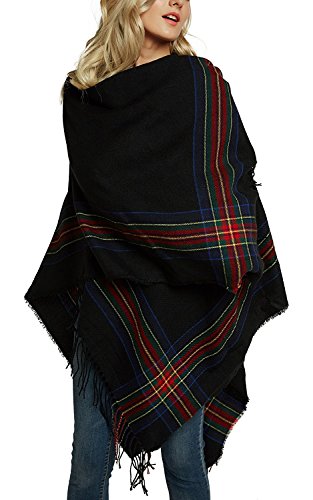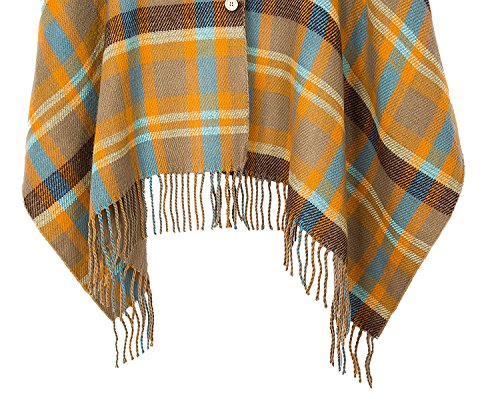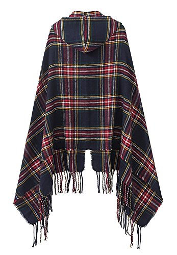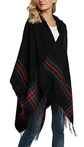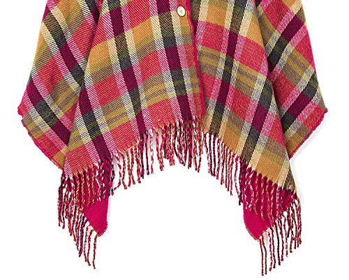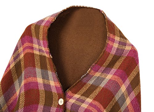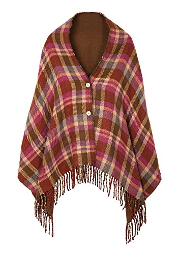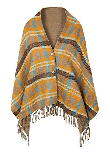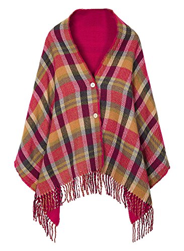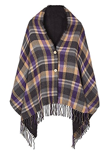 | (BABUBALA novelty-scarves)/Accessories/Cold Weather Accessories/DIRECT FROM USA/BABUBALA Tide;bright Women's Vintage Plaid Knitted Tassel Poncho Shawl Cape Button Cardigan |