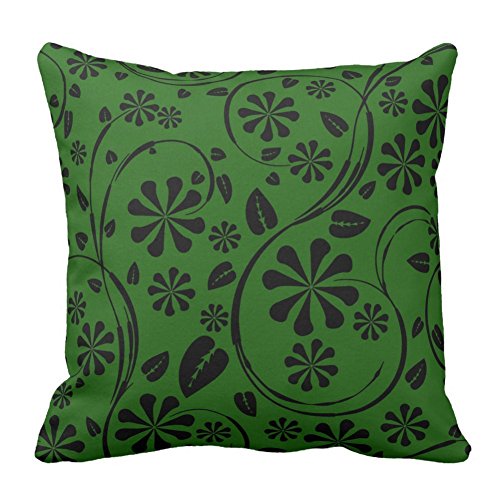 (DarcyShop)/Bedding Bath/Bedding/DIRECT FROM USA/Flower Pattern Designed Durable Cotton Pillowcase Flower Leaf Printed Dark Green And Black Flor...