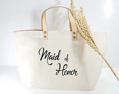 PumPumpz Maide of Honor Canvas Tote Bag for Wedding Bridesmaid Gifts.