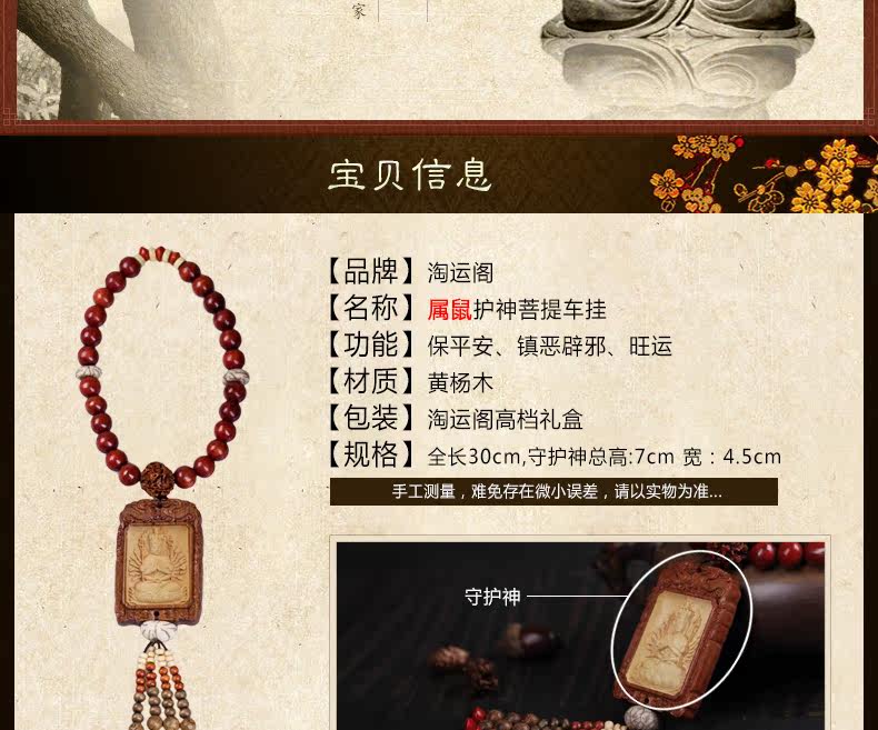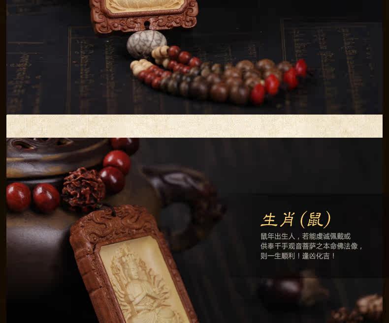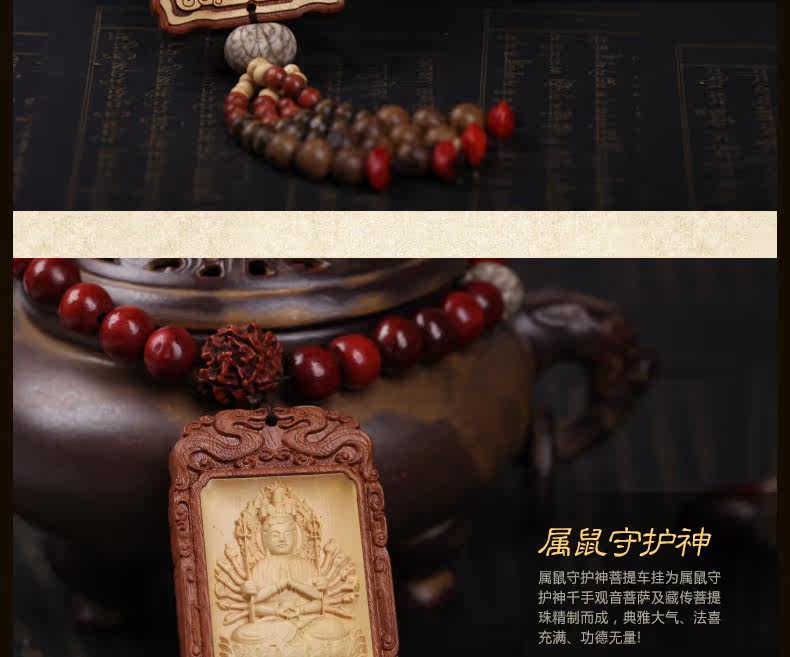 Zodiac Rat Buddha开光黄杨木千手观音挂饰汽车挂件/属鼠本命佛守护神菩提子车饰品