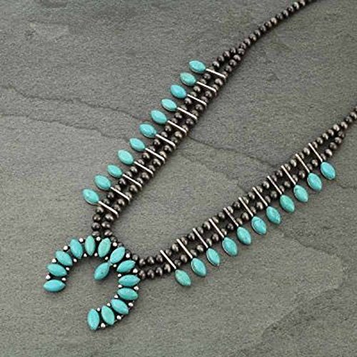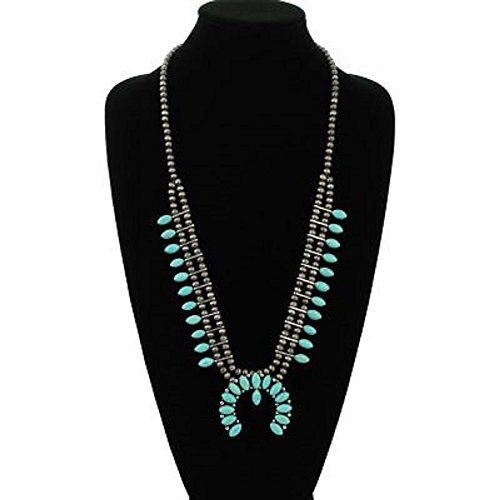 -. Title : Turquoise Silver Southwest Squash Blossom Necklace